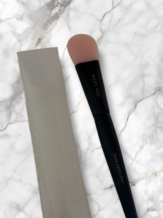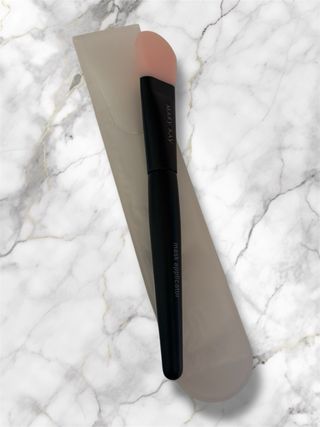 Aplicador de silicona para mascarillas. Su diseño permite una aplicación uniforme y suave. - Mango de color negro. - Punta de silicona en color rosa.