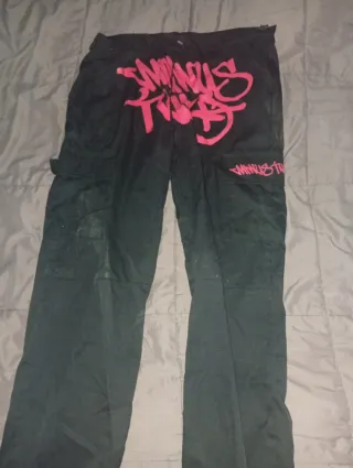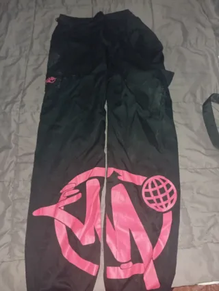 Pantalones negros con estampado rosa