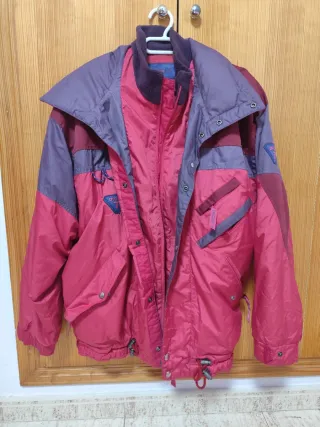 Chaqueta de la marca Degre7 con un diseño moderno y llamativo. - Combinación de colores rosa y morado. - Cuello alto con forro polar. - Cierre de cremallera y botones a presión. - Bolsillos frontales con solapa y botón. - Puños ajustables.