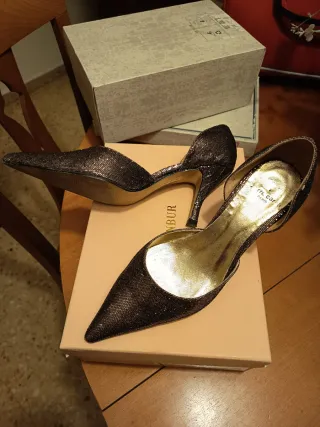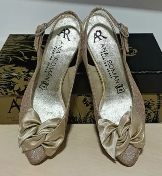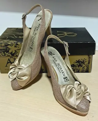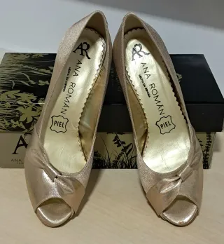 Zapatos tacón Ana Roman oro piel talla 37