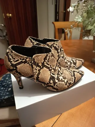 Botines cómodos piel serpiente beige/marrón usado