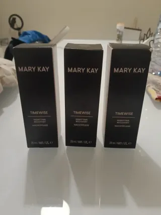 Tres cajas de Mary Kay Timewise Nightime Recovery. Caducidad 07/27. Por el precio de 1 tienes 3 unidades. - Cada caja contiene 29 ml. - Ideal para el cuidado nocturno de la piel.