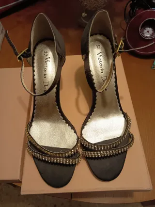 Sandalias de fiesta negras y doradas