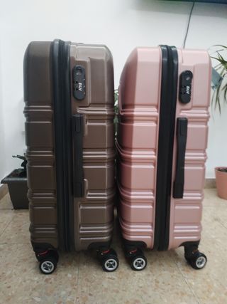 Se venden dos maletas de viaje, con medidas de 65x44x25, completamente nuevas, sin usar, 4 ruedas dobles desmontables, candado de seguridad, para 20kg. -ideales para tus próximas escapadas. - Diseño moderno y resistente. - Juego de dos maletas. - Color marrón y rosa. - pregunte ya que se van rápido y pueden ser suyas por 50€
