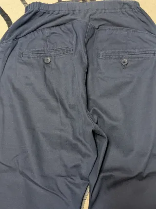 Pantalón de corte recto, ideal para el embarazo. En azul marino. Confeccionado en algodón, cómodo y adaptable. - Cintura elástica. - Bolsillos laterales y traseros. - Perfectos para entretiempo