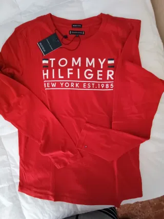 Camiseta de manga larga de Tommy Hilfiger, confeccionada en algodón orgánico. T. 16 años. - Diseño con logo grande en el pecho. - Estampado New York Est. 1985. - Cuello redondo.
