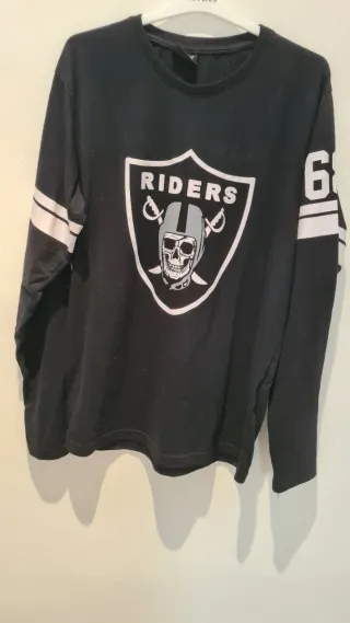 Camiseta de manga larga con el logo de los Raiders de la NFL. - Diseño con escudo y calavera. - Rayas blancas en las mangas.