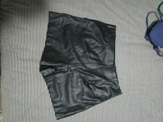 Pantalones cortos de efecto piel. - Diseño de cintura alta. - Bolsillos laterales. - Cierre de cremallera y botón.