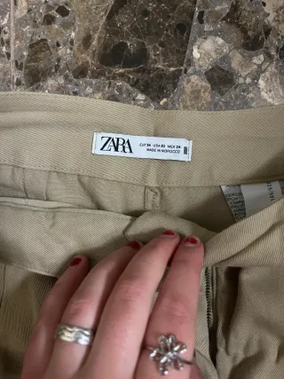 Pantalón de la marca Zara en color beige. Fabricado en Marruecos. - Talla EUR 34. - Cierre de cremallera.