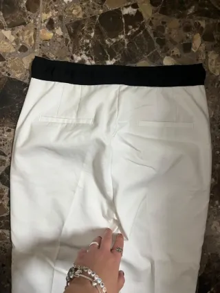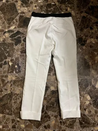 Pantalones de vestir de color blanco. - Cintura elástica negra. - Dos bolsillos traseros.