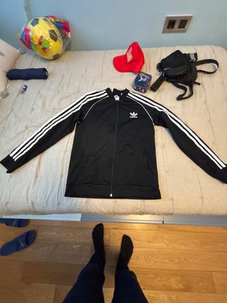 Sudadera deportiva clásica de Adidas. - Diseño icónico con las tres rayas en las mangas. - Logo de Adidas en el pecho.