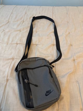 Riñonera de la marca Nike, perfecta para llevar tus esenciales. - Diseño moderno en color gris con detalles en negro. - Correa ajustable para mayor comodidad.