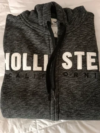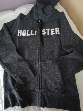 Sudadera con capucha y cremallera completa de la marca Hollister. - Diseño con logo bordado en el pecho. - Cordones negros para ajustar la capucha. - Tejido jaspeado en gris.