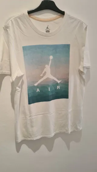 Camiseta de manga corta de la marca Jordan con el icónico logo Jumpman y el texto AIR. - Diseño con estampado frontal. - Cuello redondo.