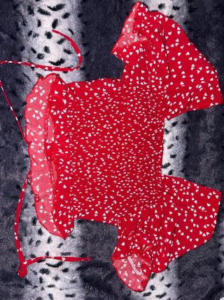 Vestido corto de color rojo con un diseño llamativo. - Detalle de flecos en la parte superior. - Cremallera en la espalda. - Tirantes.