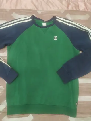 Sudadera Adidas Originals con diseño de dos tonos. - Mangas raglán en azul marino. - Cuerpo principal en verde. - Detalle de las tres rayas blancas en las mangas. - Pequeño logo cuadrado en el pecho.