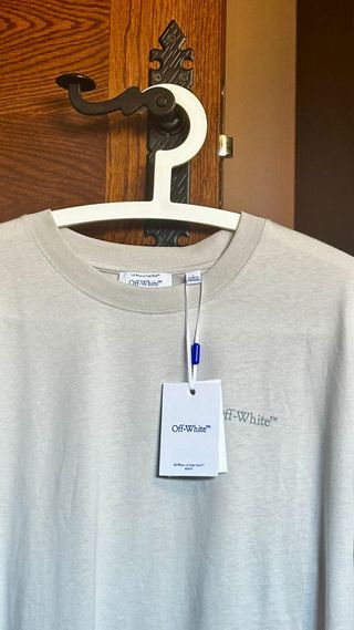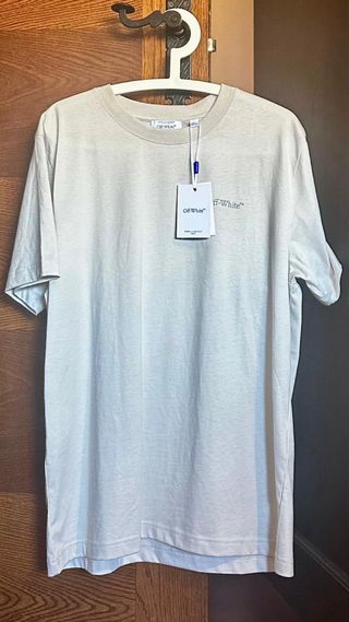 Camiseta Off-White nueva con etiquetas. - Color beige. - Talla M (equivalente a 42-44 / 52-54). - Diseño minimalista con logo discreto.