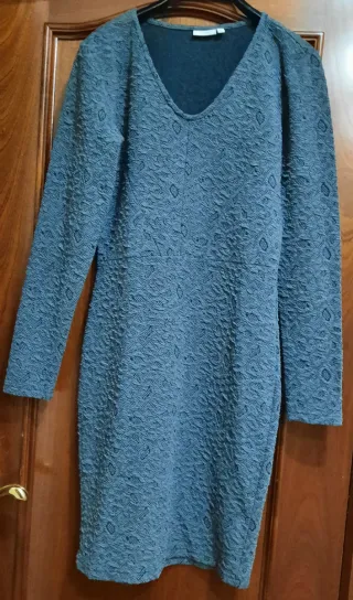Vestido corto de corte ajustado. - Manga 3/4. - Cuello redondo. Algodón suave. En perfecto estado. Sirve también como jersey
