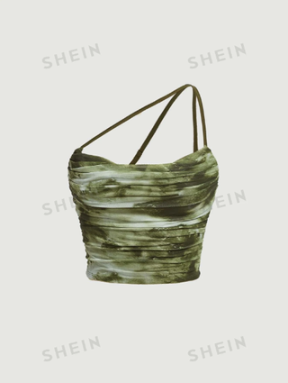 Precioso crop top de Shein en color verde caqui. Es de tirante fino y tiene un diseño fruncido que le da un toque muy favorecedor. - Está en perfecto estado. - Se entrega tal cual se ve en las fotos. Me costó 6€ SKU: sw2210131446186863 Medidas (son orientativas): -Largo: 43.60cm -Ancho: 31cm -Pecho: 78cm