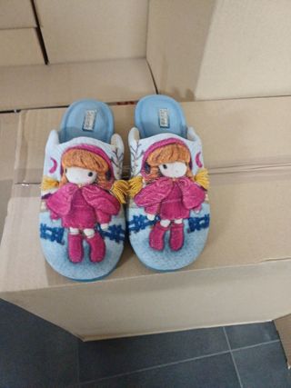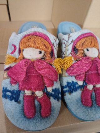 Preciosas pantuflas para, ideales para mantener los pies calentitos en casa. Son de color azul y rosa, con un diseño encantador. - Diseño con una niña bordada. - Material suave y cómodo. - Perfectas para el invierno. - Se venden dos pantuflas.