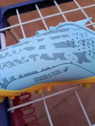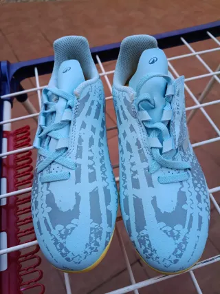Zapatillas de fútbol Kipsta en talla 33. Dan poca talla. Sin usar por error en el número. - Cierre con cordones. - Suela con tacos para césped. - Detalle de logo en la lengüeta.