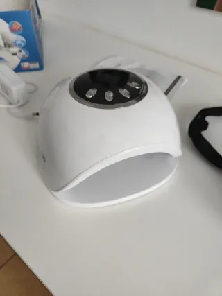 Secador de uñas con un diseño moderno y elegante. - Múltiples botones de control en la parte superior. - Amplia apertura para introducir la mano cómodamente.