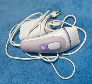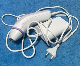 Depiladora eléctrica Braun con tecnología SenseAdapt. - Diseño ergonómico en blanco y morado. - Incluye adaptador de corriente. - No usado.