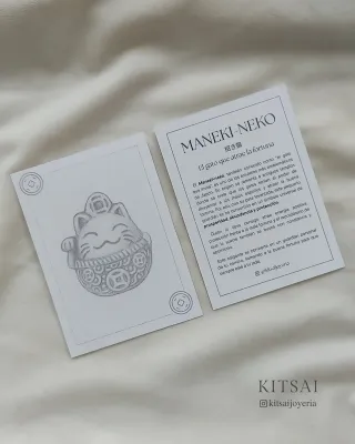 Colgante AMULETO MANEKI-NEKO – fortuna, prosperidad y buena suerte. Inspirado en el legendario gato japonés de la suerte, este colgante simboliza la atracción de la buena fortuna, nuevas oportunidades, la prosperidad en los proyectos y la protección frente a la negatividad. Se trata de un colgante de plata de ley 925, de unos 13mm, con un pequeño llamador interior a modo de cascabel, que puedes llevar contigo como un talismán de optimismo, suerte y energía positiva. 📏 Dimensiones: 13,8mm x 11,8mm x 7,1mm 🎁 Incluye bolsita de tela, paño de plata y tarjeta con el significado del símbolo. INCLUYE CADENA BAÑADA EN PLATA DE 50CM