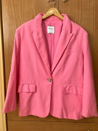 Americana de la marca Bershka en color rosa. - Un botón. - Bolsillos delanteros. - Cuello solapa.