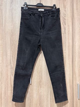 Vaqueros de corte recto y tiro alto. - Cintura alta. - Cierre de cremallera y botón. - Bolsillos delanteros y traseros. - Una sola vez puesto.