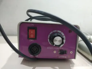 Torno eléctrico/profesional para manicura y pedicura, modelo MM-25000. - Control de velocidad variable hasta 25000 RPM. - Selector de dirección de giro (F/R). - Conexión para pieza de mano y pedal. - Sin accesorios. ** Lápiz para reparar **