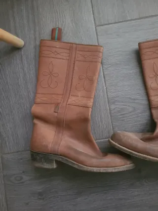 Botas de estilo campero en tono marrón. Perfectas para un look casual. - Diseño con detalles bordados. - Tirador en la parte superior. - Suela de goma.
