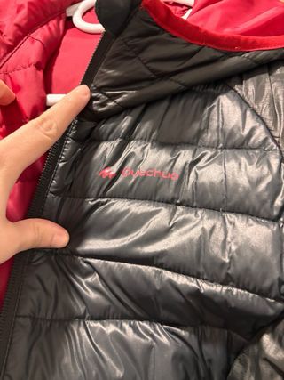 Abrigo reversible de la marca Quechua. - Diseño acolchado. - Capucha integrada. - Cierre de cremallera.