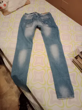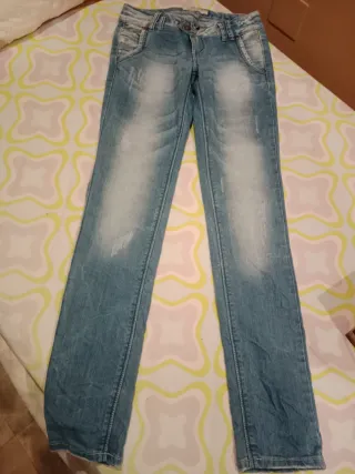 Tejanos vaqueros de corte ajustado para chica. Son cómodos y versátiles. - Diseño desgastado. - Bolsillos delanteros y traseros. - Cierre de cremallera y botón.