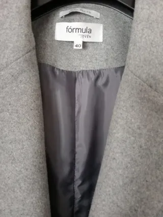 Abrigo elegante de Formula Joven en color gris. - Diseño clásico con solapas. - Cierre de botones. - Bolsillos frontales. Aunque pone talla 40 es pequeña, vale para talla 38. Muy poco uso