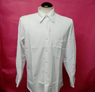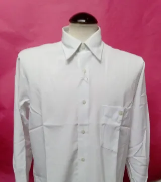 Camisa de vestir para hombre, de tejido inarrugable. - Color blanco. - Talla - 5 medidas axila-60 cm largo-80 cm - Cuello clásico. - Bolsillo en el pecho.