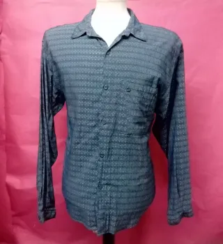 Camisa de manga larga para hombre con un estampado discreto y un bolsillo en el pecho. Talla 41 cm de cuello, axila-62 cm largo-82 cm - Estampado geométrico. - Cuello camisero. - Cierre de botones.