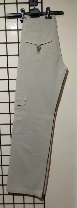 Pantalón de corte recto con un diseño clásico y funcional. Medidas en plano cintura-41 cm largo-118 y ancho de bajo-26 cm Tejido de canutillo, - Bolsillos cargo laterales. - Cierre de botón y cremallera. - Tejido resistente.