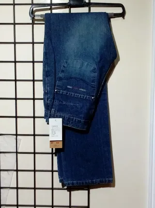 Pantalón vaquero para hombre con un diseño desgastado y cierre de botones.talla 38 medidas en plano cintura-35 cm largo-110 cm - Estilo moderno y casual. - Tejido denim resistente. - Detalle de bolsillos.