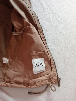 Cazadora ligera de la marca Zara, ideal para entretiempo. - Diseño con capucha. - Cierre de cremallera. - Cordones ajustables en la parte inferior.Aunque pone talla L es más bien una M