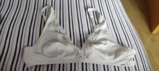 Sujetador de algodón , con un delicado detalle de encaje en el escote. - Diseño sin aros para mayor comodidad. - Adorno de encaje en el borde superior.