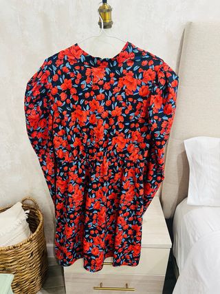 Vestido floral negro y rojo