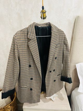 Blazer cuadros beige y marrón