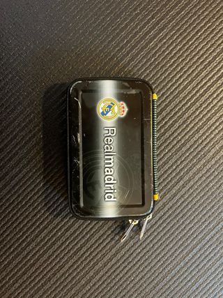Cartera o estuche vintage del Real Madrid. Producto oficial. - Diseño con el escudo y nombre del equipo. - Cremallera para cierre.