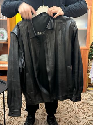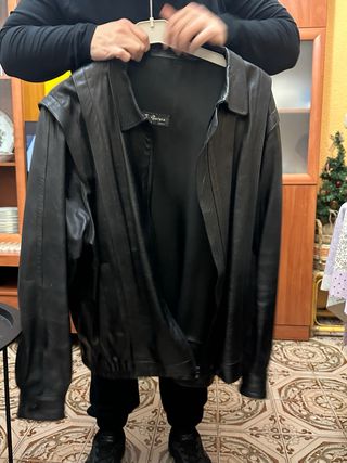 Chaqueta de cuero auténtico de la marca J. García. Un clásico atemporal para tu armario. - Material: Cuero real. - Color: Negro. - Diseño vintage.