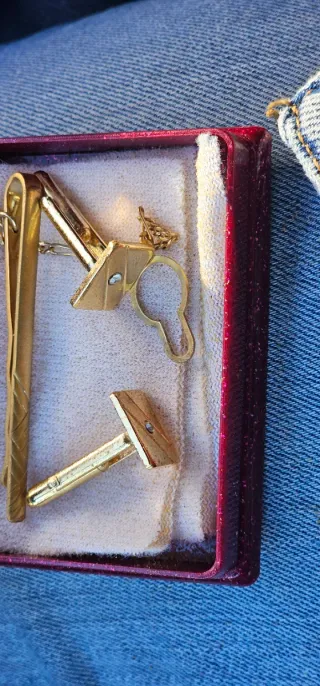 Se escucha ofertas que me interese el precio por privado Elegante set de joyas de la marca Belmonte. - Incluye gemelos y pasador de corbata. - Diseño clásico en tono dorado. - Presentado en su caja original.