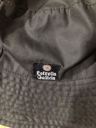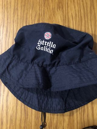 Gorra de agua negra con el logo de Estrella Galicia. Color azul marino Sin estrenar. Lo he lavado para ponerlo a la venta. Con bolsillo para guardarlo y poder llevarlo colgado o ponerle las llaves - Diseño tipo bucket. - Cordón ajustable en el borde inferior.