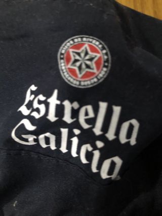 Camiseta conmemorativa del 25 aniversario del RC Deportivo. Diseño exclusivo con detalles de la marca. - Cuello tipo polo con cierre de botones. - Logo de Kappa en mangas y pecho. - Inscripción Estrella Galicia 0,0% vol. en el frontal. - Número de edición limitada 096/2500.