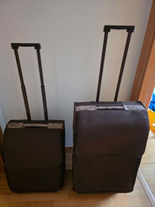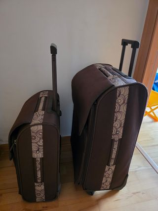 Juego de dos maletas. Maleta de 20 kgs y maleta de cabina. Las dos cuestan 20 €. Cada una por 10 €.
