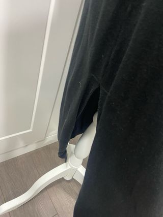 Cazadora de polipiel con un diseño moderno y elegante. - Cuello redondo. - Cierre asimétrico con cremallera. - Bolsillos frontales con cremallera. - Detalle de costuras en hombros y cintura. - Corte peplum en la parte inferior. Tiene algun desperfecto como se puede ver en las fotos